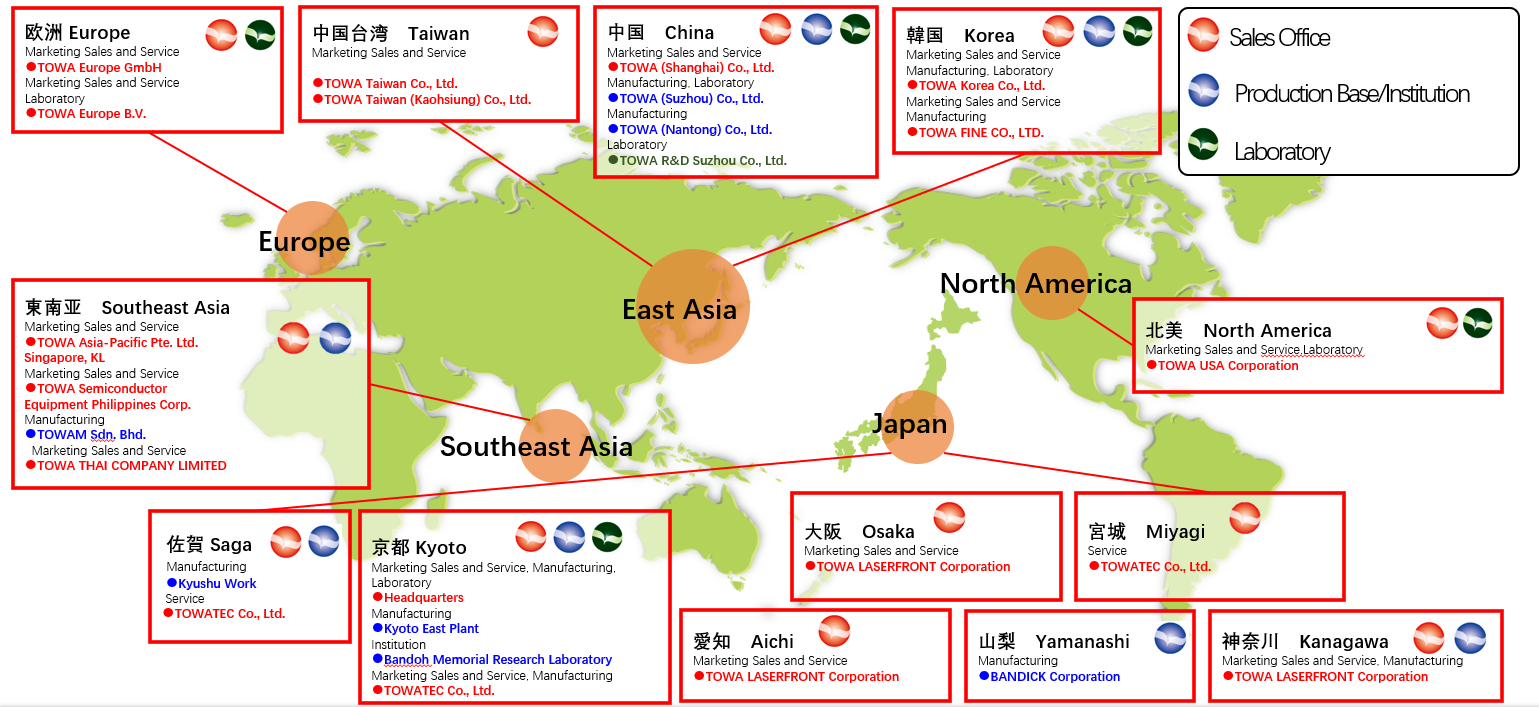 2022-08-18 15:45:05TOWA全球网点欧洲,亚洲,美洲主要国家均设立生产销售网点。
